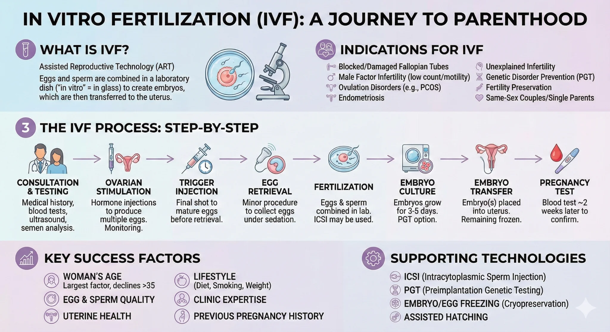 - It is one of the most widely used Assisted Reproductive Technologies (ART) for treating infertility, where a woman’s eggs are fertilized with sperm outside the body in a laboratory, and the resulting embryo is transferred into the uterus to achieve pregnancy.