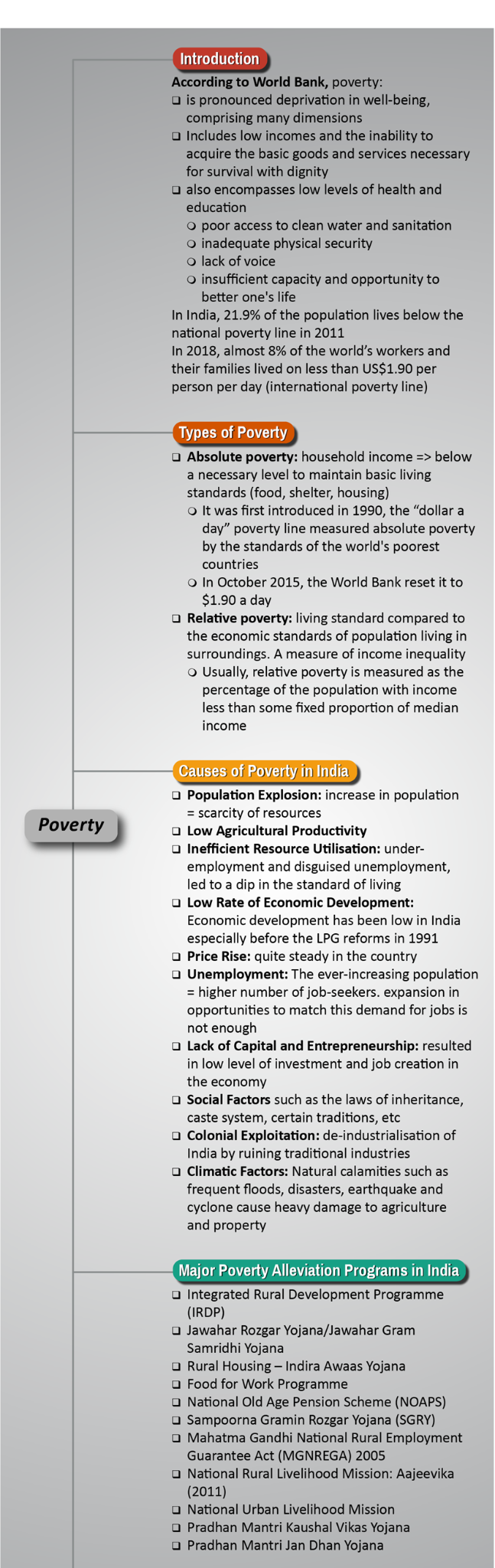 - According to NITI Aayog, poverty is measured by setting a poverty line (the minimum expenditure needed to meet basic socially acceptable needs) and the poverty ratio denotes the share of the population living below this line.
