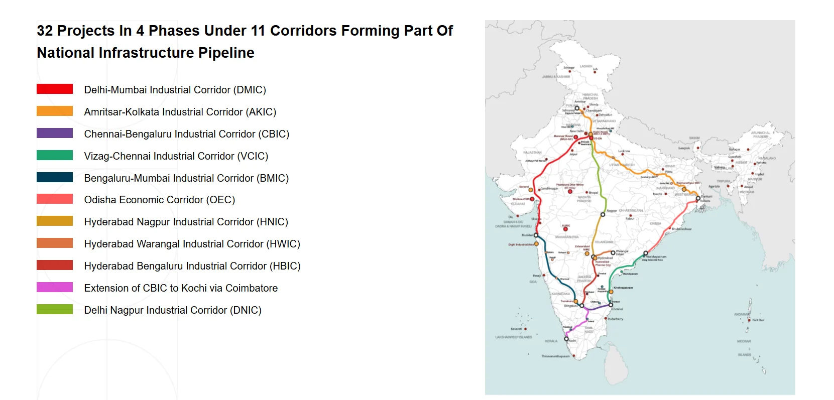 - By promoting industrial clustering, leveraging regional strengths, and developing along key transport corridors, these corridors support regional development, strengthen supply chains, and integrate India into global value chains.