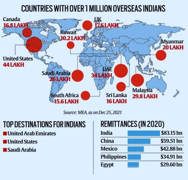- With 35.42 million overseas Indians concentrated mainly in 10 countries, including the US, UAE, Malaysia, and Canada, the diaspora wields considerable economic influence globally.