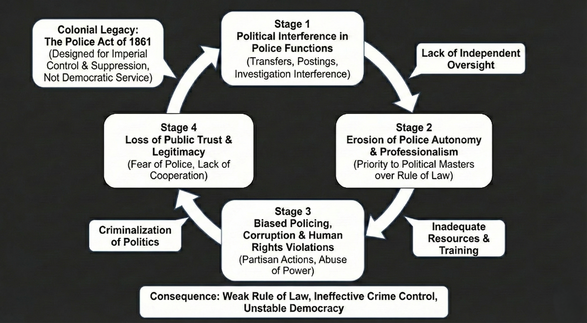 - This lack of functional autonomy forces officers to prioritize political loyalty over the rule of law, eroding public trust and impartial justice delivery.