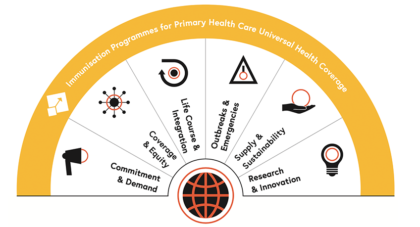 • It is based on a conceptual framework of seven strategic priorities, to ensure that immunization fully contributes to stronger primary health care and attainment of universal health coverage.
