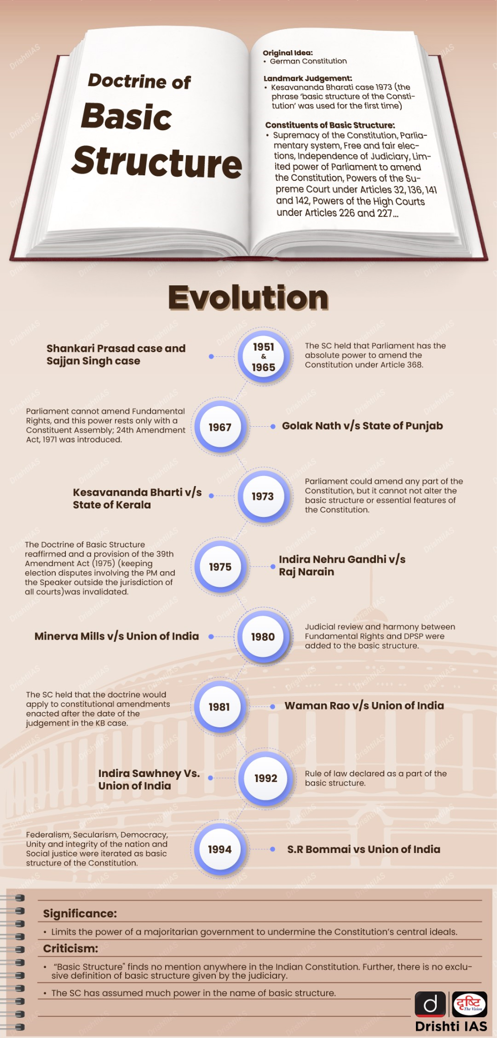- About: Basic structure doctrine of the Indian Constitution, is a judicial review principle established by the Supreme Court of India in the landmark case of Kesavananda Bharati v. State of Kerala in 1973.
