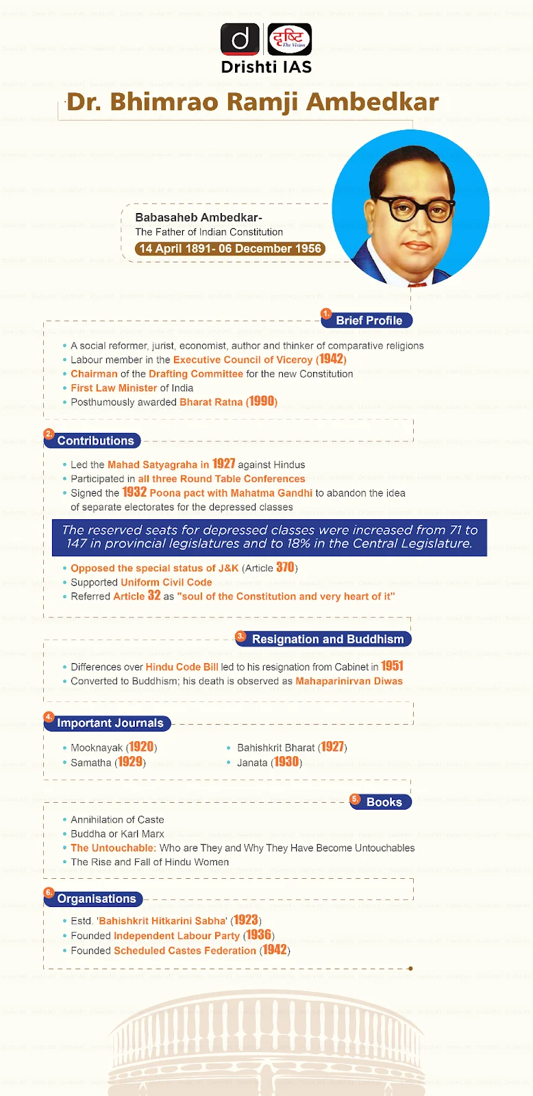 - Political Career: He served as the First Law Minister of Independent India and was the Chairman of the Drafting Committee of the Constituent Assembly.