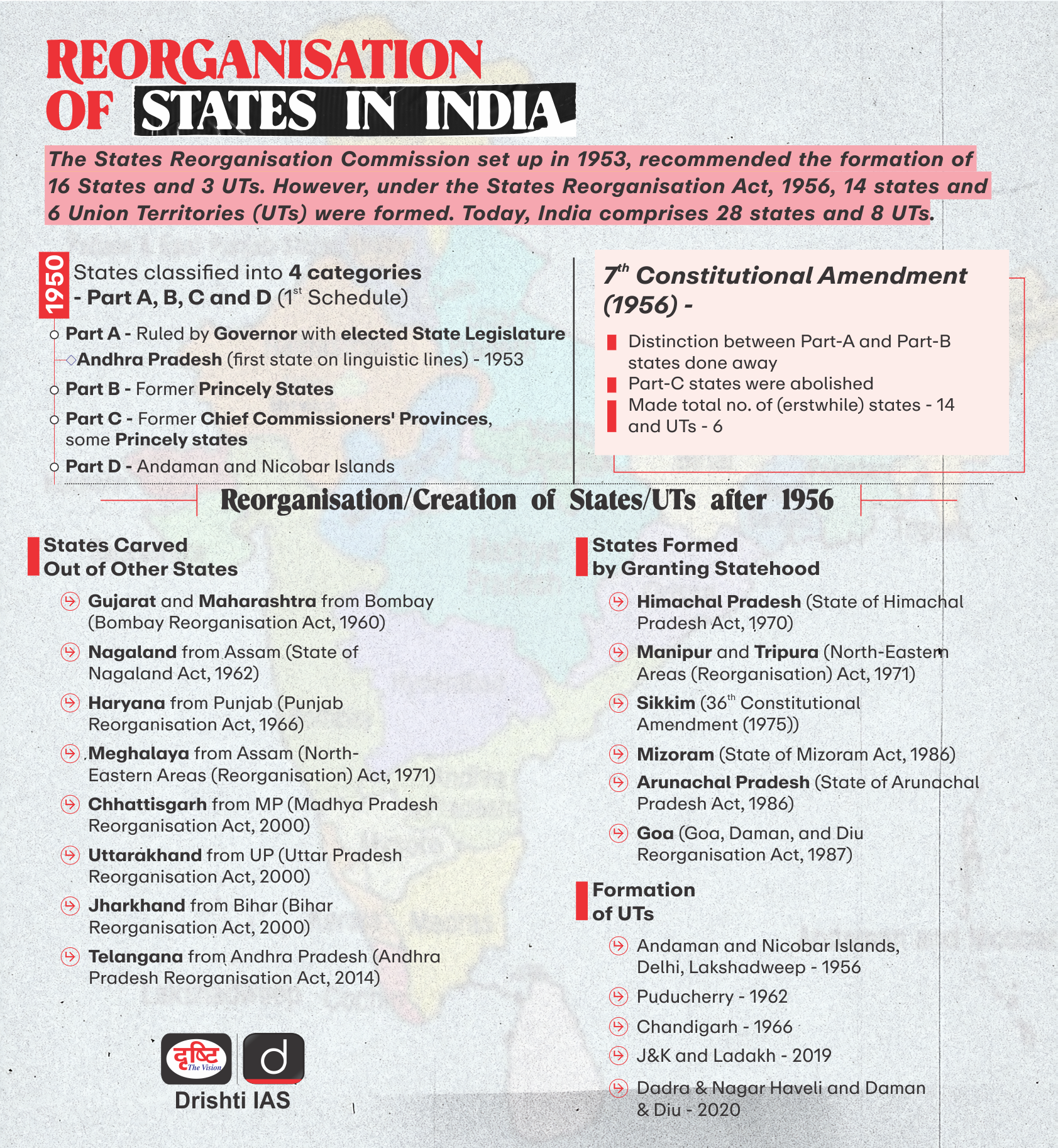 - This marks as a key milestone in India’s administrative evolution, shaped by the States Reorganisation Act, 1956, and later state bifurcations.