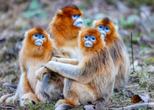- Classified as Endangered by the IUCN, the golden snub-nosed monkey is known for its golden-orange fur, blue face, and thick coat adapted to cold climates.