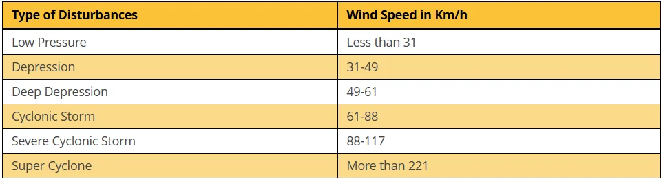 - Classification of Cyclones: IMD classifies low-pressure systems in the Bay of Bengal and Arabian Sea by damage potential, following World Meteorological Organization (WMO) guidelines.