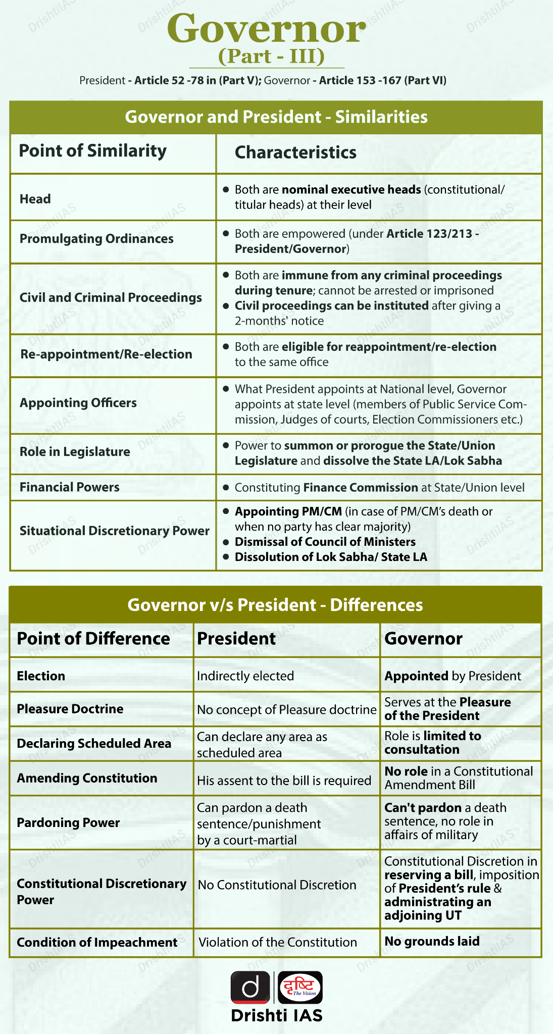 - Constitutional Position of the Governor: The Governor is the constitutional head of the State under Article 153, with the executive power of the State vested in him under Article 154. He acts as a link between the Union and the State.