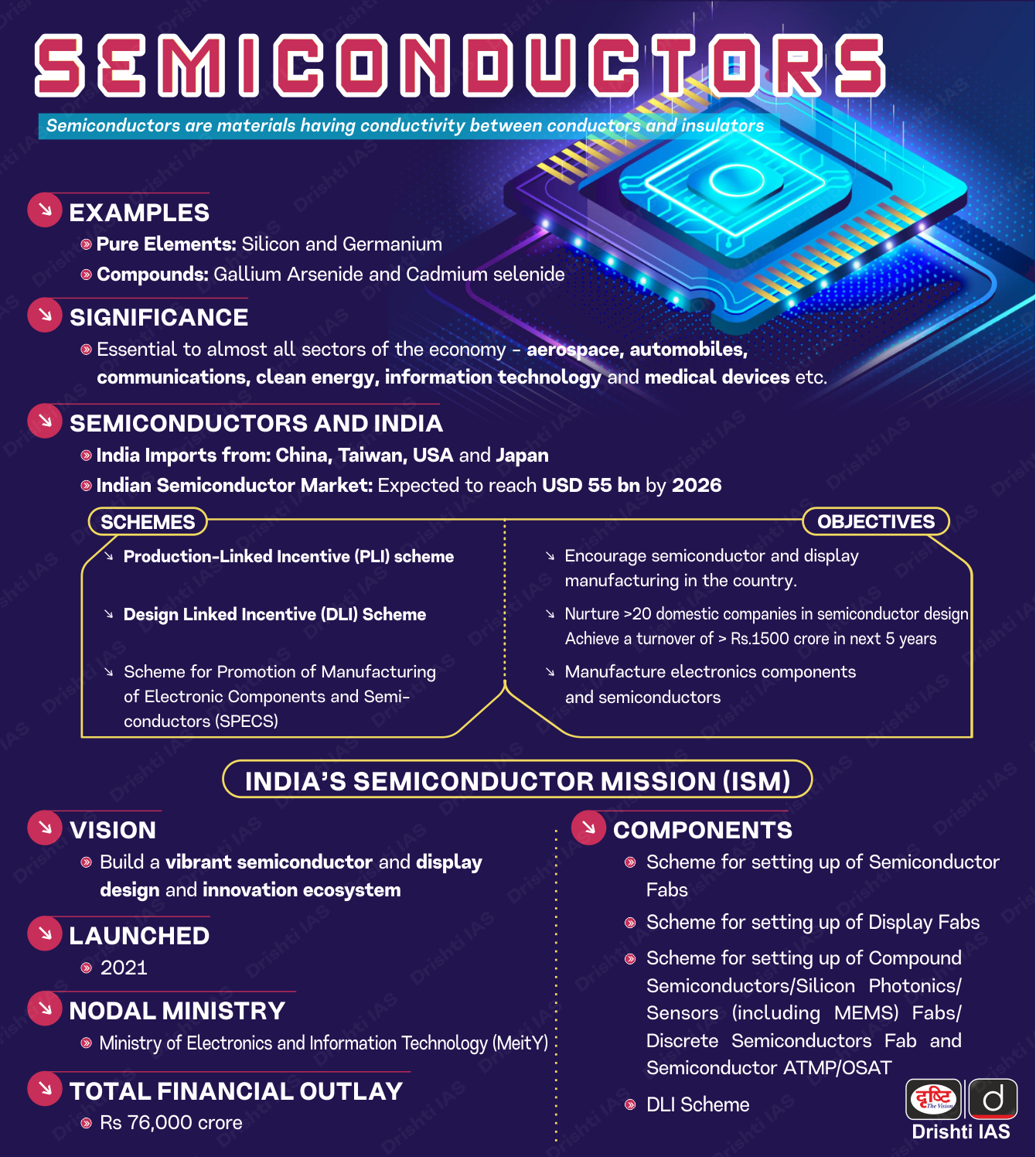 - About: ISM 2.0 aims to position India as a reliable and competitive player in the global semiconductor value chain while advancing the goals of Aatmanirbhar Bharat and Make in India–Make for the World. A budgetary provision of ₹1,000 crore has been made for FY 2026–27 to support this objective.