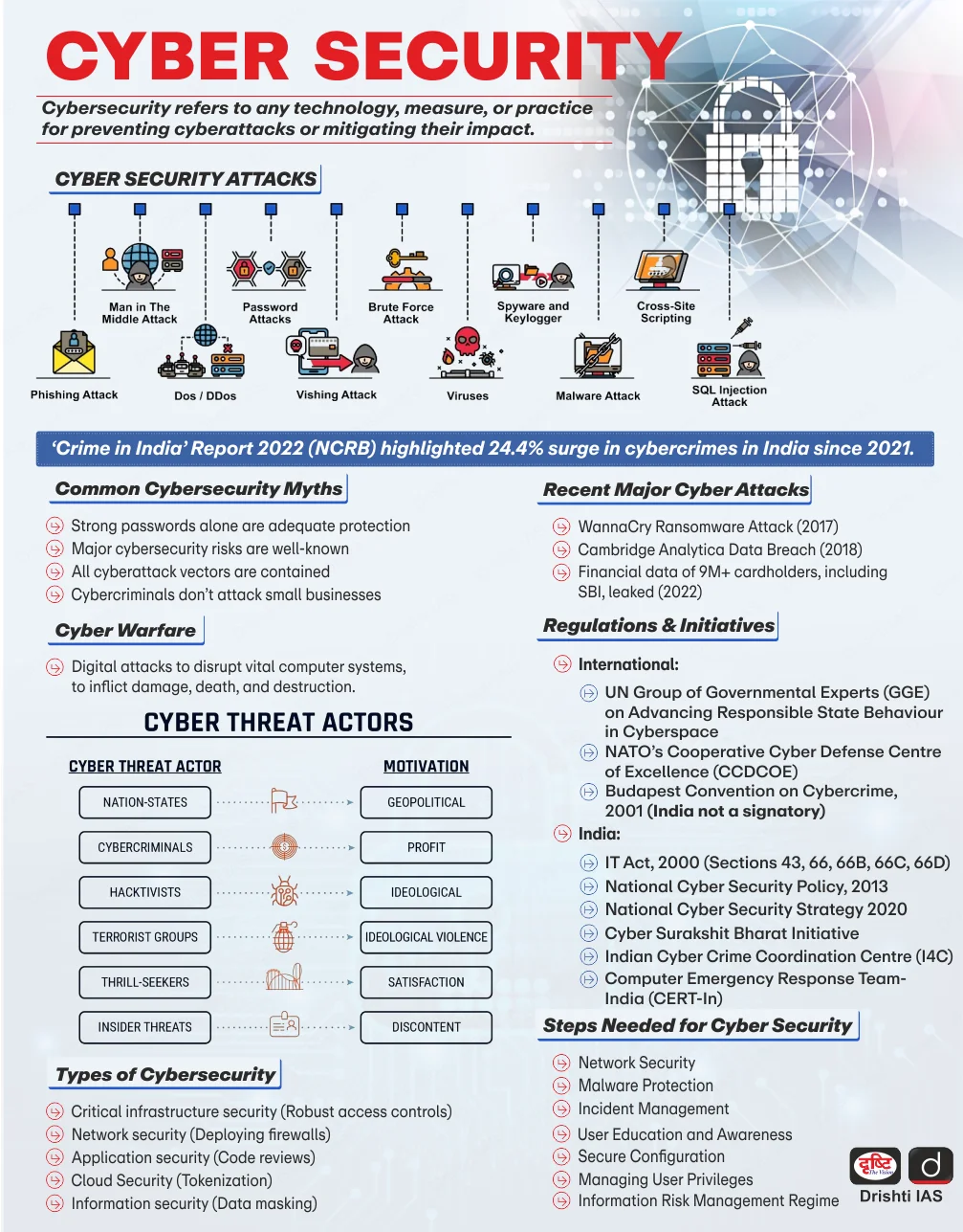 - CERT-In is national nodal agency for cybersecurity with a vision of proactive prevention, incident response, and securing India’s communications & information infrastructure
