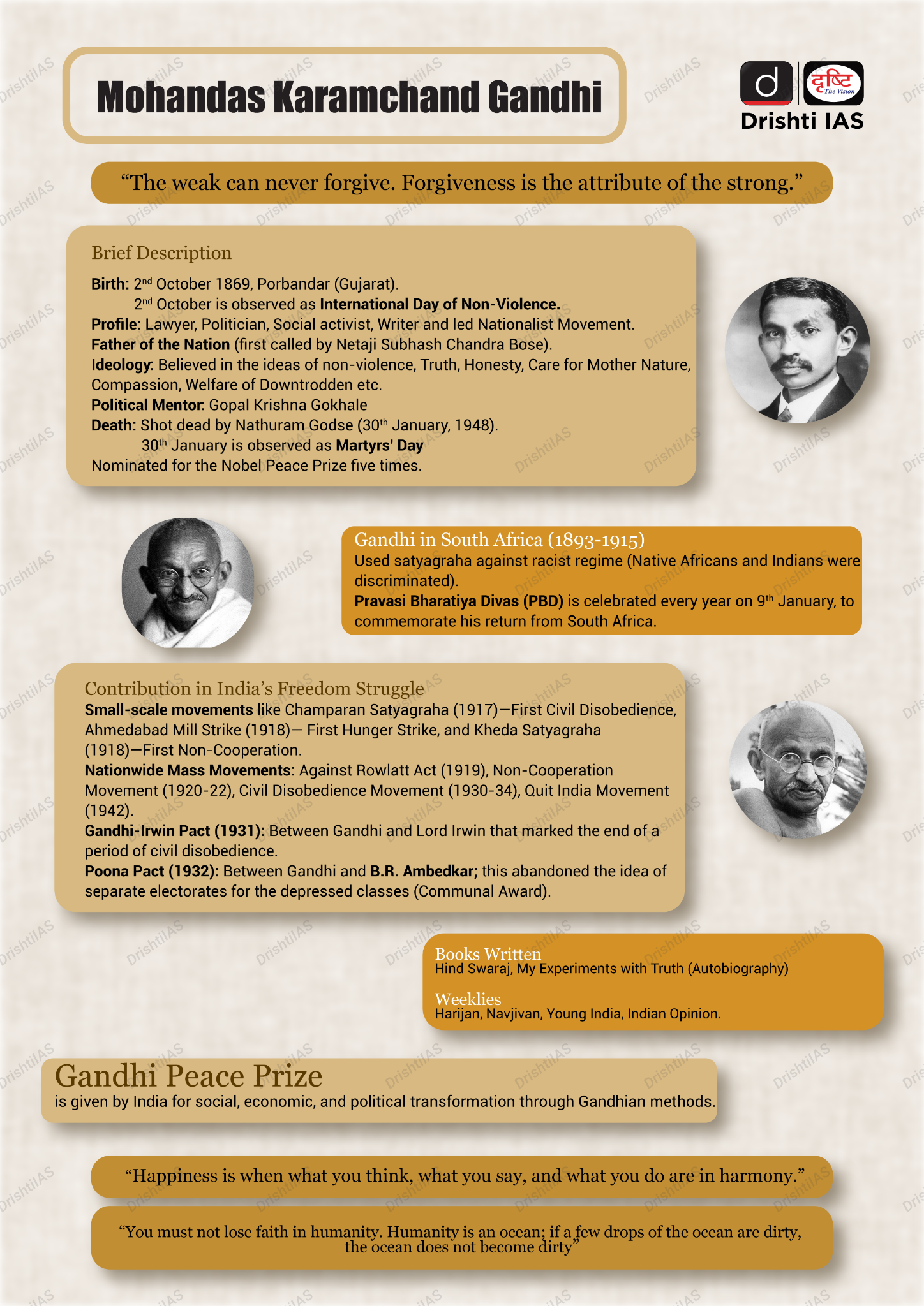 - Mahatma Gandhi was born on 2nd October 1869, a date now globally observed as the International Day of Non-Violence following its UN designation in 2007 to promote his principles of peace and non-violence.