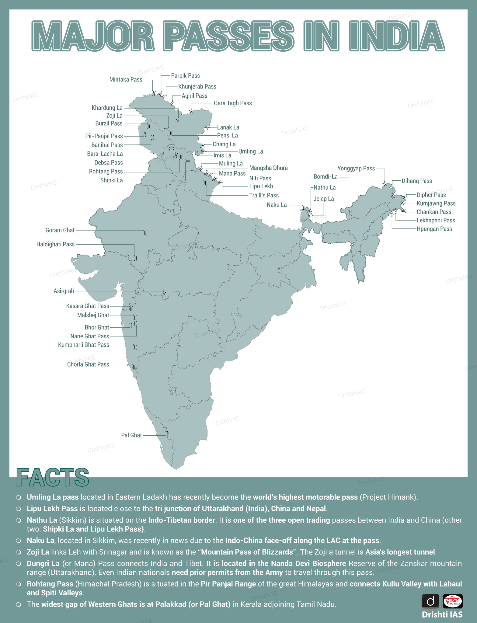 - Nathu La: It is a high-altitude Himalayan pass in East Sikkim on the India–China border, standing at 4,302 metres.