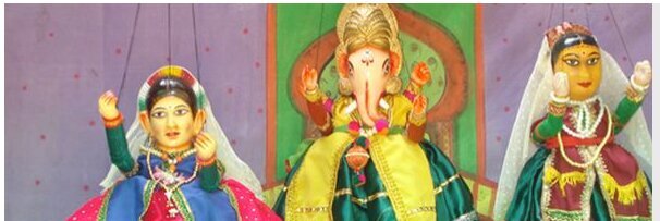 These two-dimensional profiles of mythological people cast haunting, colourful and vibrant shadows on a screen of thin cloth. The performance is usually at night, back-lit by huge oil lamp, with the complement of reading instrument and singing. The puppets are made out of leather beaten paper thin and painted by Natural dyes cut and perforated.