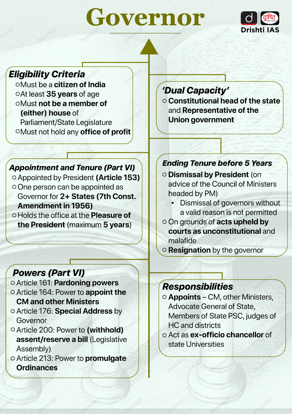 - Furthermore, following a CM's Death or Resignation, the Governor's choice of a successor can be highly controversial if the ruling party is internally divided, leading to accusations of partisan interference.