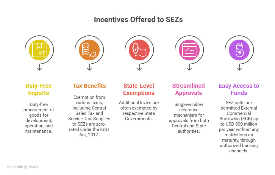 - Countering US Tariffs: High US tariffs have made Indian SEZ exports uncompetitive, reducing export competitiveness.