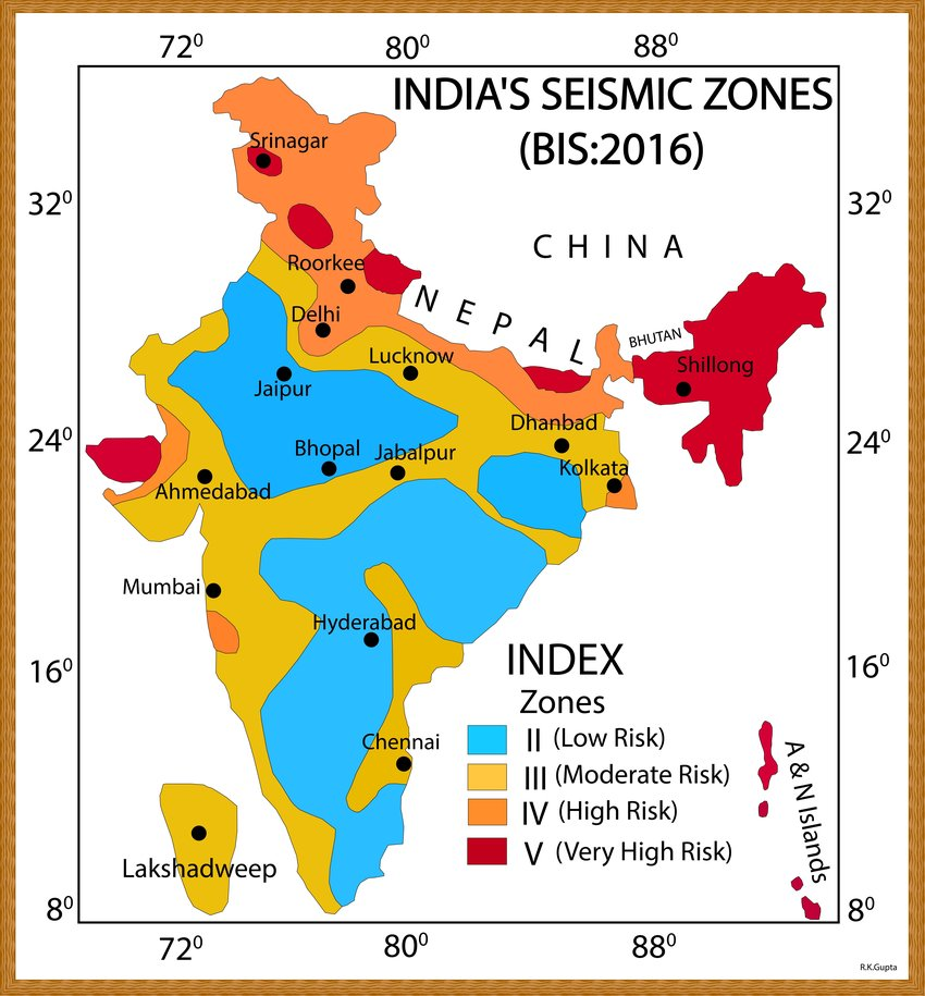 - This standard divides the country into four seismic zones i.e., Zone II (Low), Zone III (Moderate), Zone IV (High), and Zone V (Very High), with approximately 59% of India's landmass considered prone to earthquakes.
