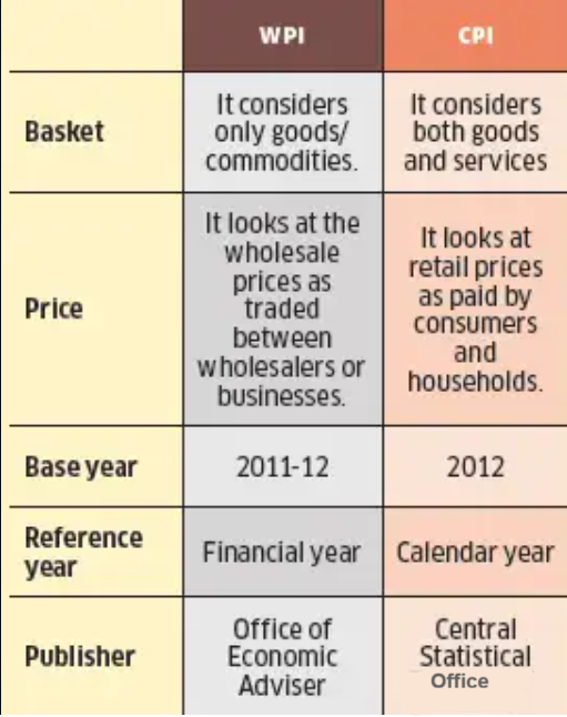 - CPI is released by the Ministry of Statistics & Programme Implementation (MoSPI), while WPI is published by the Ministry of Commerce and Industry.