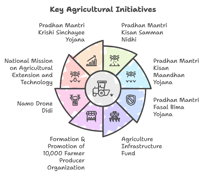 - Rollout of Digital Public Infrastructure (DPI) for Agriculture: The government is strategically building a Digital Public Infrastructure (DPI), known as AgriStack, to modernize governance and service delivery across the sector.