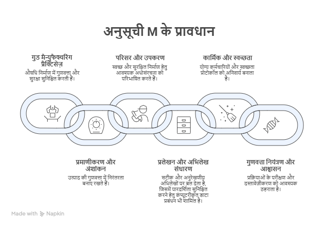 1. औषधि एवं प्रसाधन सामग्री अधिनियम के अंतर्गत अनुसूची M क्या है?
