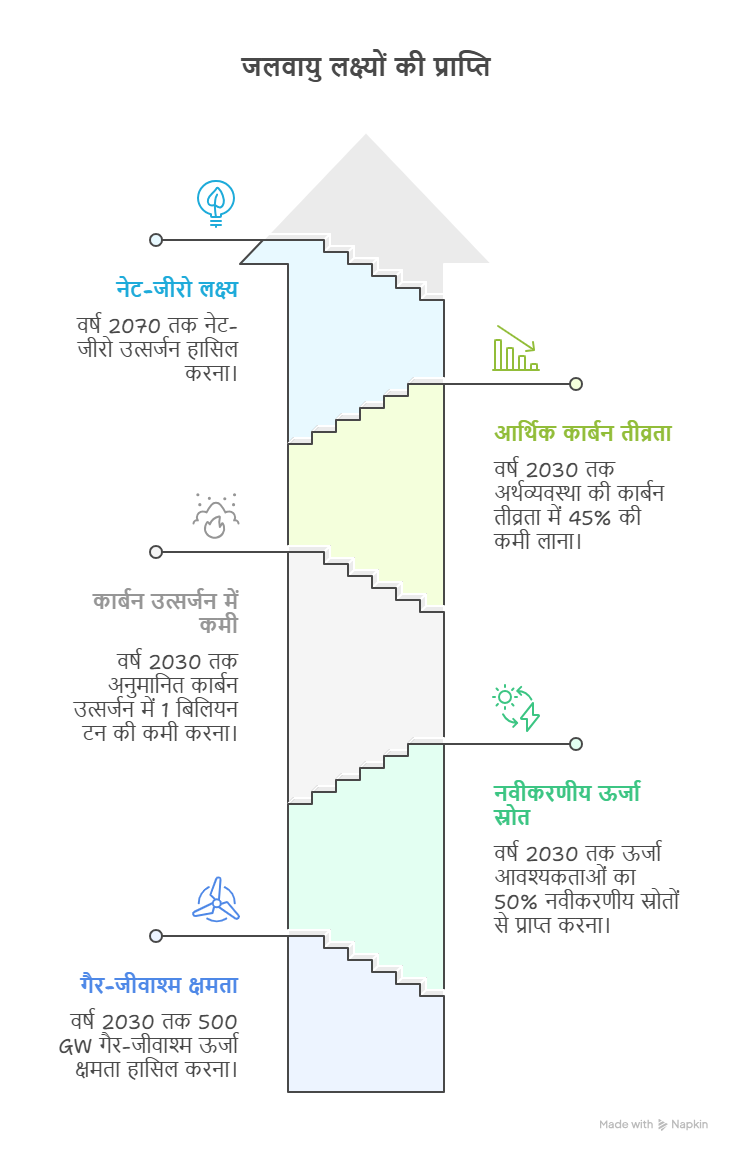 - साझा जलवायु महत्त्वाकांक्षाएँ: भारत वर्षं 2030 तक 500 GW गैर-जीवाश्म ऊर्जा क्षमता का लक्ष्य रखता है, जिसमें से 280 GW सौर ऊर्जा से प्राप्त होगी, जबकि ऑस्ट्रेलिया वर्ष 2035 तक 62–70% उत्सर्जन में कमी का लक्ष्य रखता है, जो उसके नेट-ज़ीरो लक्ष्यों के अनुरूप है।