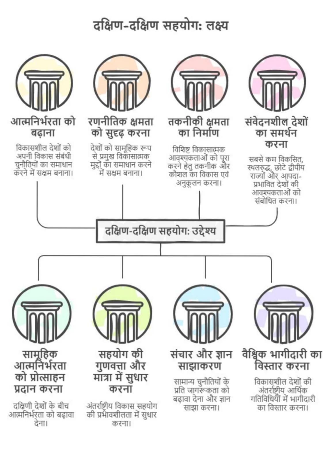 - यह सहयोग क्षमता निर्माण और नवाचार के विस्तार को सक्षम बनाता है, साथ ही दक्षिणी नेतृत्व और प्राथमिकताओं का सम्मान करता है।