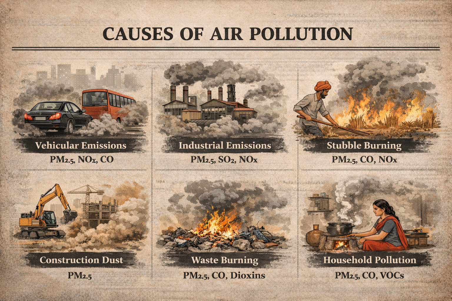 प्रिलिम्स के लिये: वायु प्रदूषण, राष्ट्रीय स्वच्छ वायु कार्यक्रम (NCAP), ग्रेडेड रिस्पॉन्स एक्शन प्लान (GRAP), वायु गुणवत्ता सूचकांक (AQI), औद्योगिक उत्सर्जन, वाहन उत्सर्जन