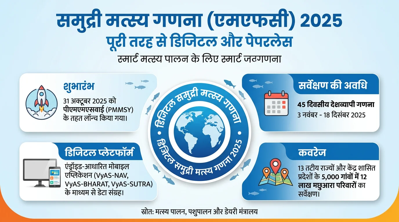 - संसाधन प्रबंधन: आगामी राष्ट्रीय समुद्री मत्स्यपालक गणना और अनन्य आर्थिक क्षेत्र (EEZ) हेतु निर्धारित नवीन नियमावली डेटा-आधारित प्रबंधन को बढ़ावा देती है। यह पहल सतत विकास लक्ष्य 14 (जल के नीचे जीवन) के प्रति भारत की प्रतिबद्धता को सुदृढ़ करती है।