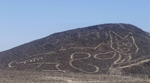 - इस नक्काशी के रूप में पाम्पा डी नाज़का (Pampa De Nazca) में एक पहाड़ी की ढलान पर एक बिल्ली के चित्र की खोज की गई है।