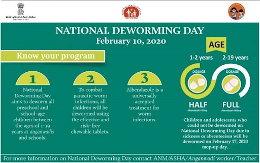 - केंद्रीय स्वास्थ्य एवं परिवार कल्याण मंत्रालय के राष्ट्रीय कृमि निवारण दिवस (National Deworming Day) को वर्ष 2015 में शुरू किया गया था।