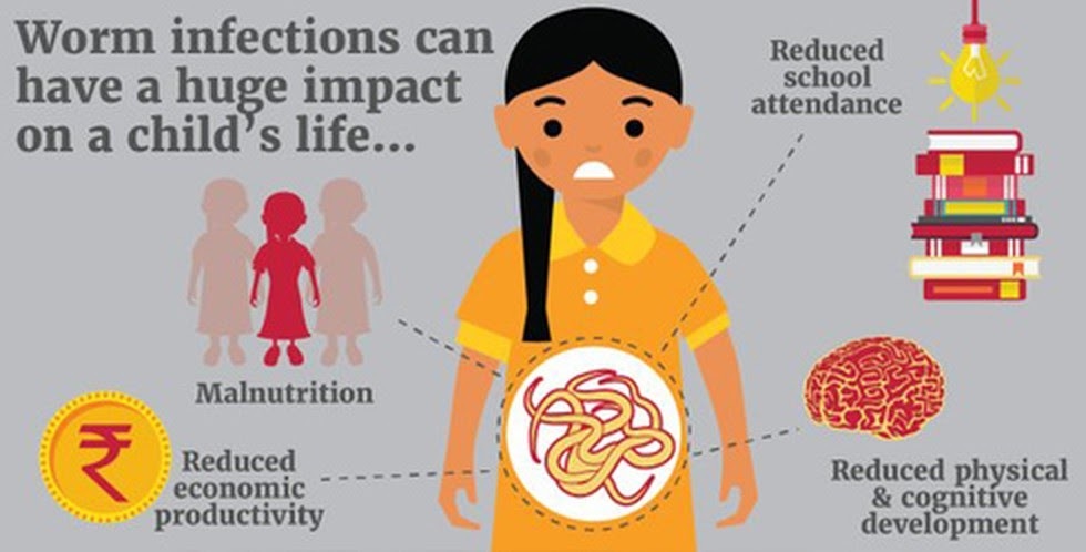 - विश्व स्वास्थ्य संगठन नियमित अंतराल पर कृमि निवारण (डीवर्मिंग) की सलाह देता है, ताकि मलिन बस्तियों में रहने वाले बच्चों एवं किशोरों के शरीर से कृमि संक्रमण को समाप्त किया जा सके तथा उन्हें बेहतर पोषण एवं स्वस्थ जीवन उपलब्ध कराया जा सके।