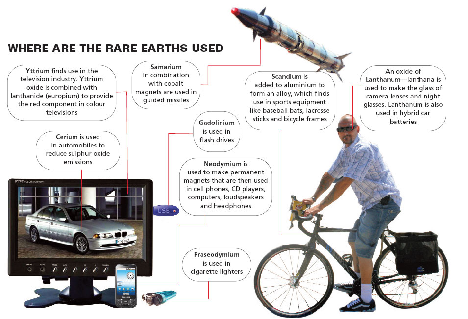 - इन खनिजों में अद्वितीय चुंबकीय, ल्यूमिनसेंट व विद्युत रासायनिक गुण विद्यमान होते हैं और इस प्रकार उपभोक्ता द्वारा इनका इलेक्ट्रॉनिक्स, कंप्यूटर एवं नेटवर्क, संचार, स्वास्थ्य देखभाल, राष्ट्रीय रक्षा, आदि सहित कई आधुनिक तकनीकों में उपयोग किया जाता है।