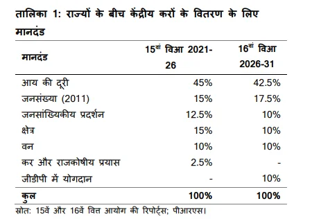 - क्षेत्रफल (10%): 15वें वित्त आयोग के अनुरूप अपरिवर्तित।