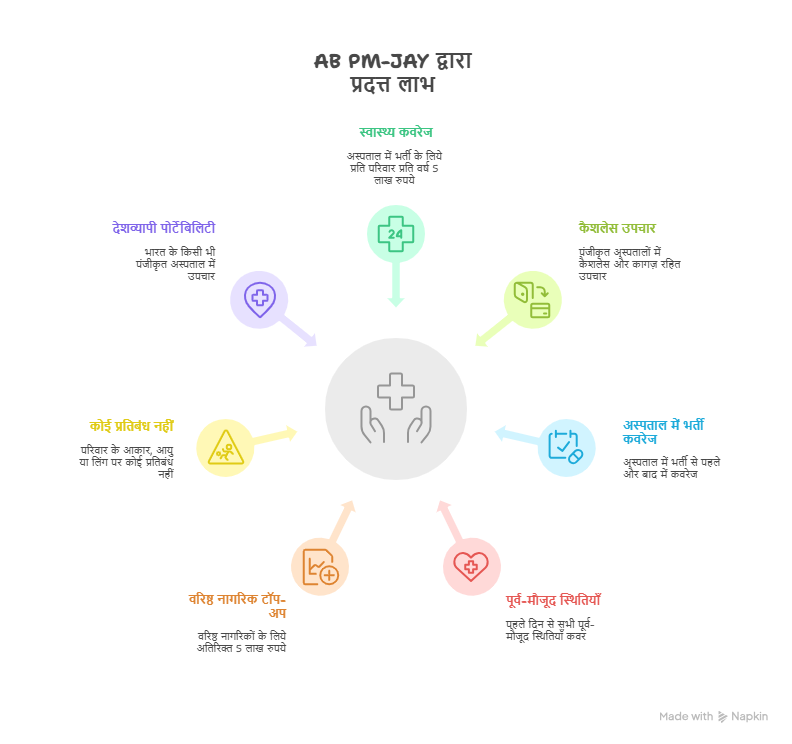 AB-PMJAY भारत की प्रमुख स्वास्थ्य बीमा योजना है जो द्वितीयक और तृतीयक देखभाल के लिये प्रति परिवार प्रति वर्ष 5 लाख रुपये प्रदान करती है, जिसका उद्देश्य कमज़ोर आबादी के लिये सार्वभौमिक स्वास्थ्य कवरेज़ प्राप्त करना है।