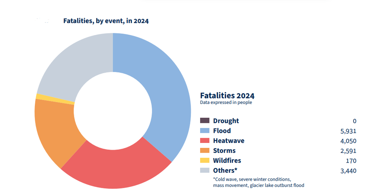 - विशिष्ट EWE: वर्ष 2024 में बाढ़ विश्व स्तर पर सबसे घातक रही (~ 50 मिलियन व्यक्ति प्रभावित हुए), इसके बाद हीटवेव (~ 33 मिलियन) और सूखा (~ 29 मिलियन) होंगे। भारत के मानसून ने 8 मिलियन व्यक्तियों को प्रतिकूल रूप से प्रभावित किया।