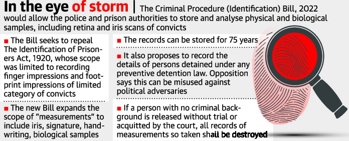 हाल ही में आपराधिक प्रक्रिया (पहचान) विधेयक, 2022 को लोकसभा में पेश किया गया है।