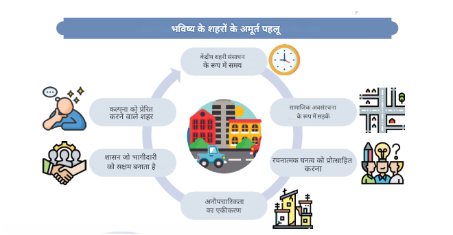 - शहरी परिवर्तन: शहरी उत्पादकता को बढ़ावा देने के लिये FSI को बढ़ाना, ULB के वित्त को मज़बूत करना, जाम और शहरी विस्तार से निपटने के लिये सार्वजनिक परिवहन (मेट्रो, ई-बस) का विस्तार करना।