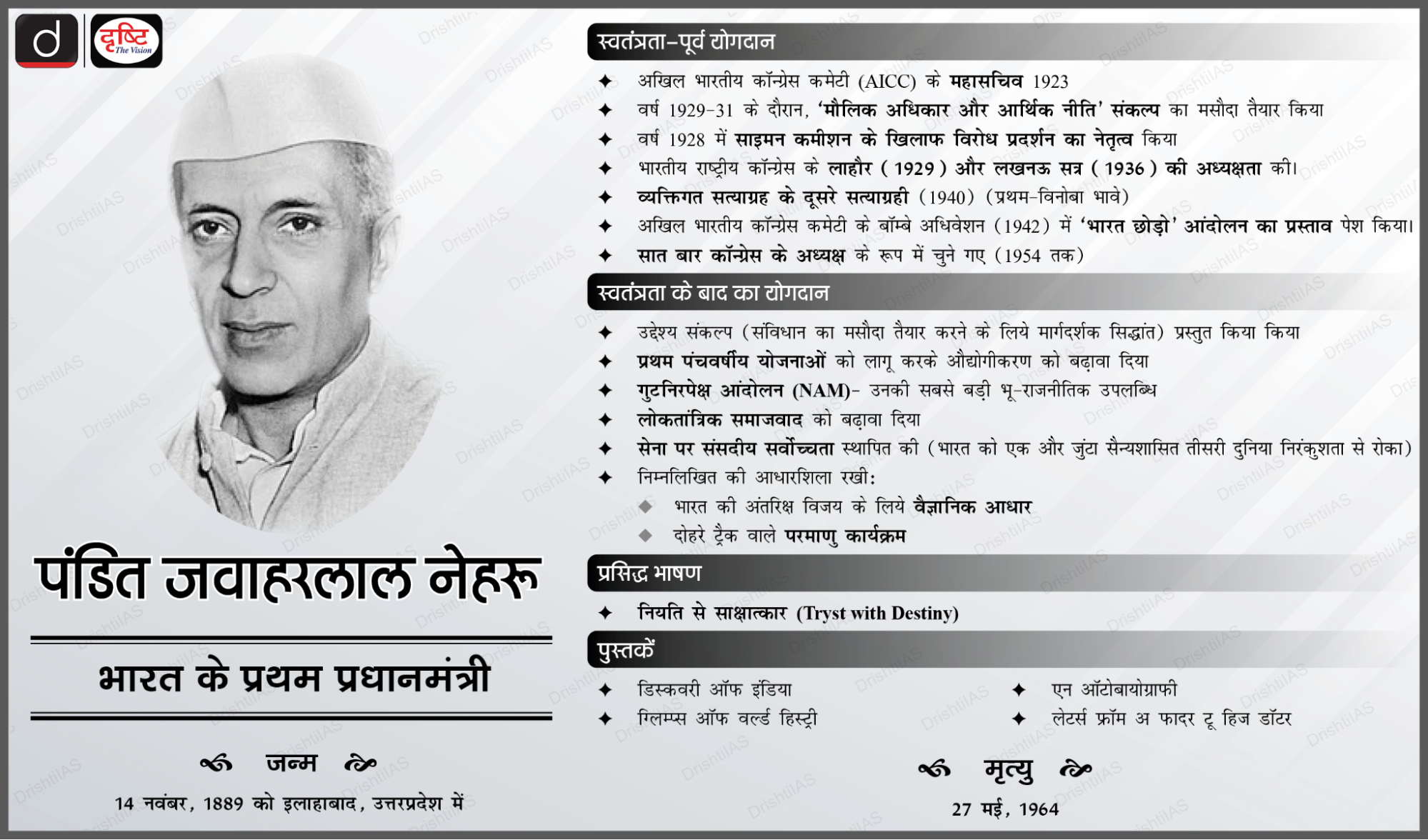 - यह अवसर नेहरू के दृष्टिकोण संस्थाओं और राष्ट्र निर्माण के प्रति उनकी प्रतिबद्धता के माध्यम से आधुनिक भारत को आकार देने में उनके स्थायी योगदान पर विचार करने का भी अवसर प्रदान करता है।