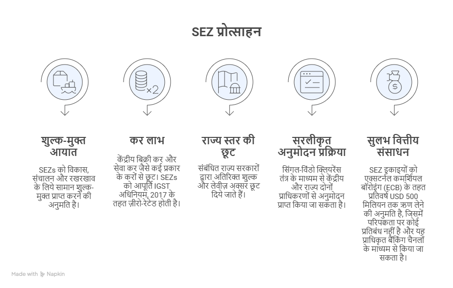 - SEZ को दिये जाने वाले प्रोत्साहन: