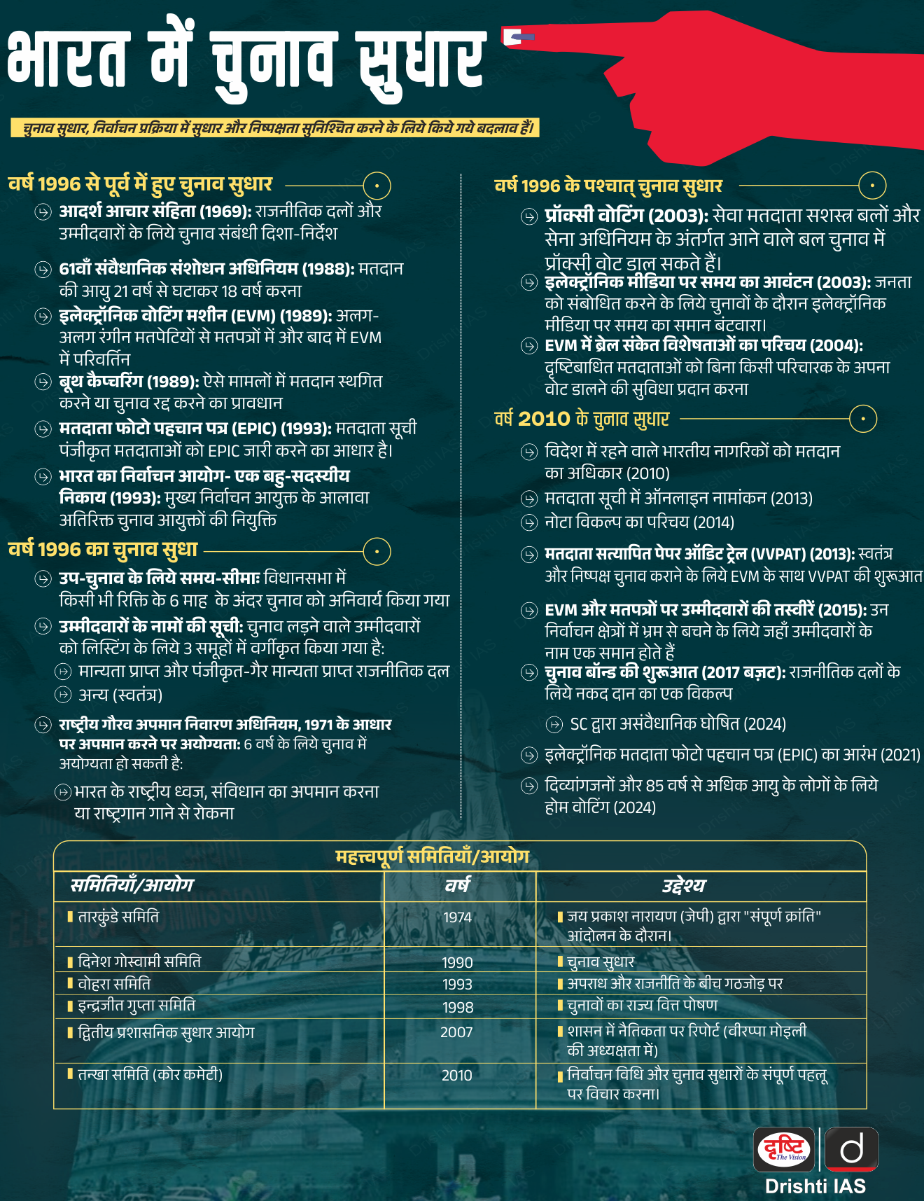 प्रश्न. भारत में लोकतंत्र की गुणता को बढ़ाने के लिए भारत के चुनाव आयोग ने 2016 में चुनावी सुधारों का प्रस्ताव दिया है। सुझाए गए सुधार क्या हैं और लोकतंत्र को सफल बनाने में वे किस सीमा तक महत्त्वपूर्ण हैं? (2017)