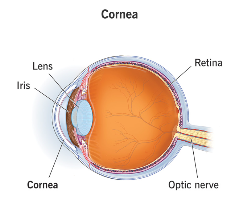- कॉर्निया-अंधता (Corneal Blindness) वह स्थिति है जिसमें कॉर्निया (नेत्र का पारदर्शी हिस्सा, जो परितारिका और पुतली को ढकता है तथा प्रकाश को अंदर प्रवेश करने देता है) में क्षति या रोग होने के कारण दृष्टि प्रभावित या समाप्त हो जाती है। इसके प्रमुख कारण हैं संक्रमण, चोट, कुपोषण या आनुवंशिक विकार।