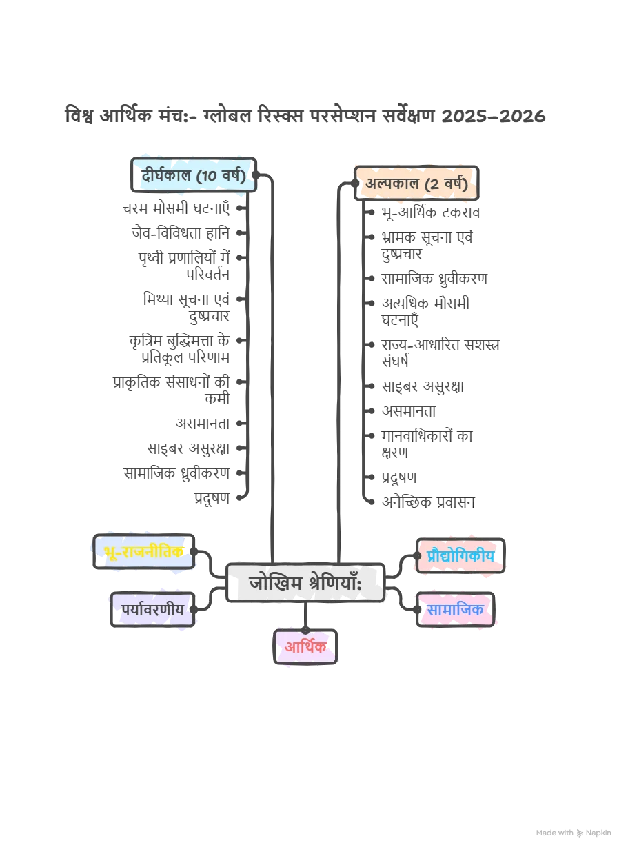 1. वैश्विक जोखिम रिपोर्ट, 2026 के अनुसार, वर्ष 2026 में भारत के लिये सबसे बड़ा जोखिम क्या है?