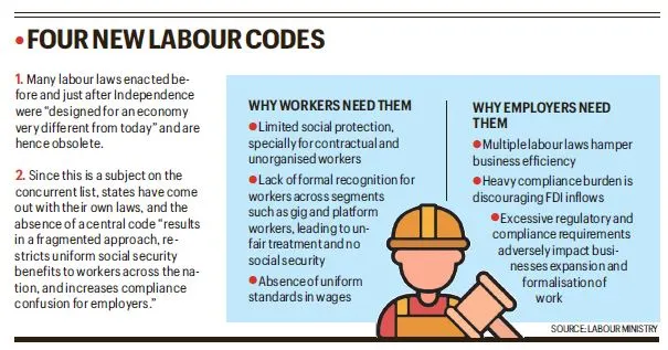 - चार संहिताओं में एकीकरण के बाद भी, असमान राज्य स्तरीय नियम और एकीकृत डिजिटल प्लेटफॉर्मों को अपनाने की धीमी प्रक्रिया नियामक विखंडन को कायम रखती है।