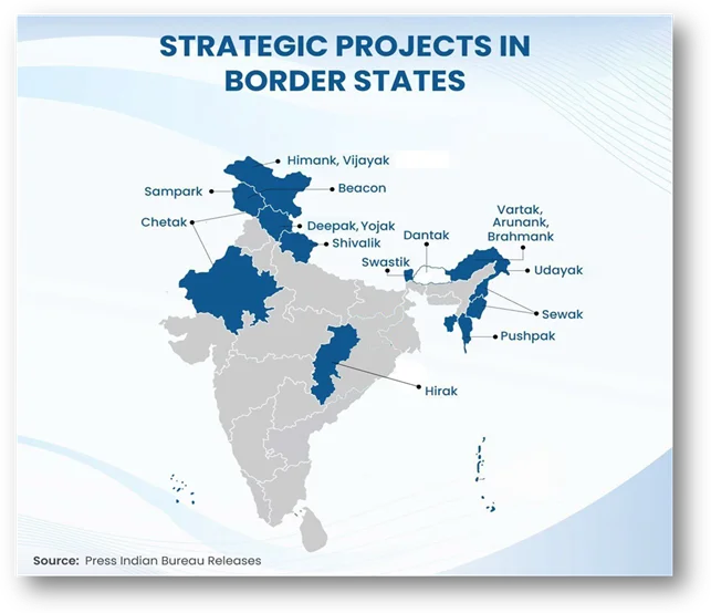 - उपलब्धियाँ: BRO ने अटल, सेल और शिंकुन ला सुरंगों, सियोम, सिस्सेरी और देवक पुलों, प्रोजेक्ट्स विजयक और स्वास्तिक के अंतर्गत सड़कों और बागडोगरा व बैरकपुर हवाई पट्टियों के आधुनिकीकरण जैसे प्रमुख अवसंरचनात्मक संसाधन तैयार किये हैं, जिससे सर्व-ऋतु रणनीतिक संपर्कता सुनिश्चित होती है।