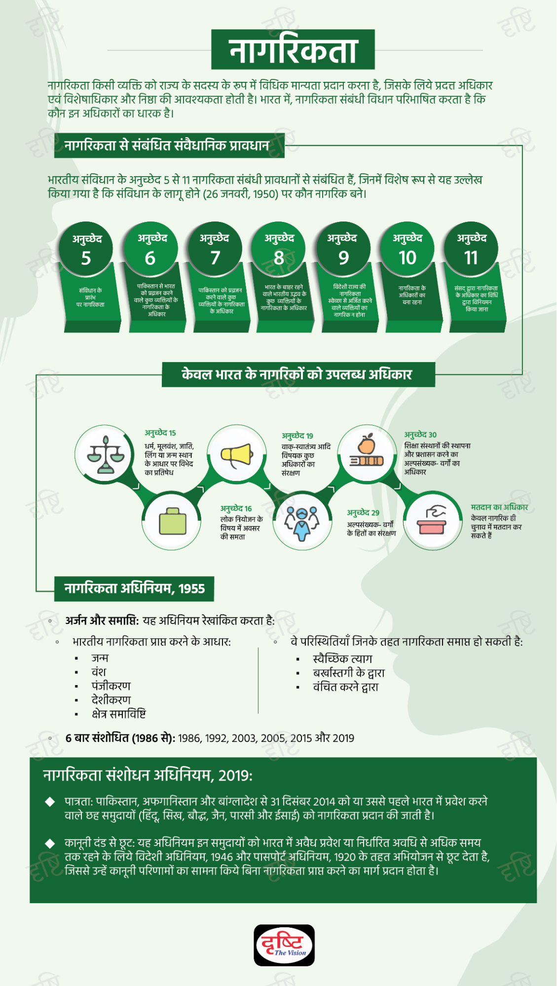 - अनुच्छेद 326: मतदान के लिये भारतीय नागरिकता को संवैधानिक आवश्यकता बनाता है।