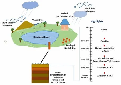 हाल ही में शोधकर्त्ताओं ने कोंडागई झील, शिवगंगा से प्राप्त तलछट के माध्यम से भारत के सबसे विस्तृत अंतर्देशीय जलवायु रिकॉर्डों में से एक का पुनः आकलन किया है। यह क्षेत्र पूर्वोत्तर मानसून के प्रति अत्यधिक संवेदनशील है।