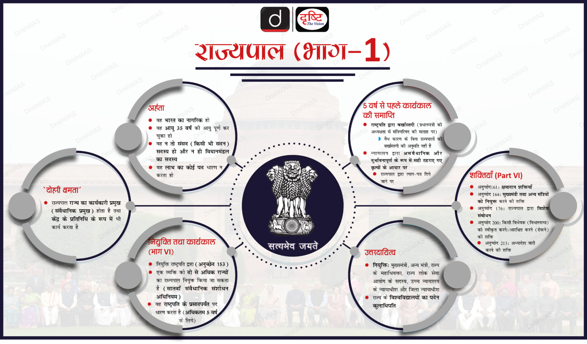 भारत के संविधान के अनुच्छेद 153 से 159 राज्यपाल की नियुक्ति, शक्तियों, योग्यताओं और शपथ की रूपरेखा प्रस्तुत करते हैं।