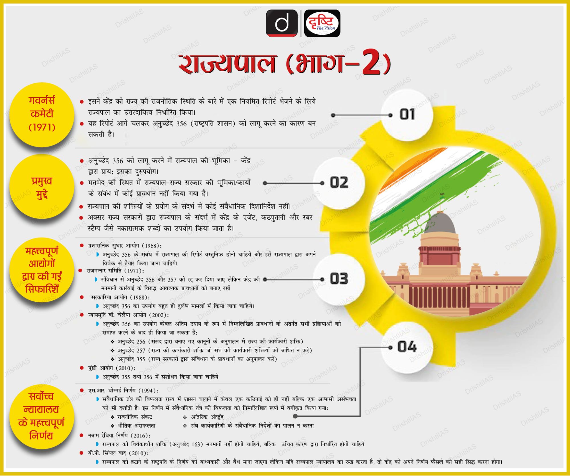 - अनुच्छेद 156 (कार्यकाल): राज्यपाल भारत के राष्ट्रपति के 'प्रसादपर्यंत' पद धारण करते हैं।