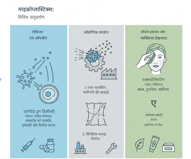- प्राइमरी माइक्रोप्लास्टिक: ये विशेष रूप से सूक्ष्म आकार में व्यावसायिक उपयोग के लिये बनाए जाते हैं।