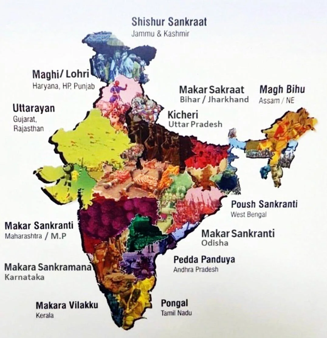 मकर संक्रांति भारत का एक प्रमुख फसल उत्सव है, जो प्रतिवर्ष 14 जनवरी को मनाया जाता है। देश के अलग-अलग राज्यों में इसे स्थानीय परंपराओं, विशिष्ट रीति-रिवाज़ों और विविध नामों के साथ हर्षोल्लास से मनाया जाता है।