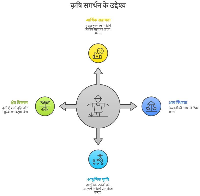 - प्राकृतिक आपदाएँ: बाढ़, सूखा, चक्रवात, ओलावृष्टि, भूस्खलन और असमय वर्षा से होने वाले नुकसानों को शामिल करता है।